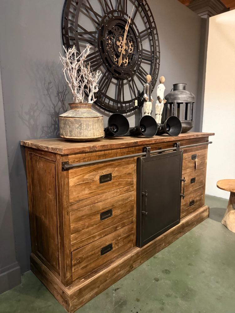 INDUSTRIËLE TEAK HOUTEN DRESSOIR