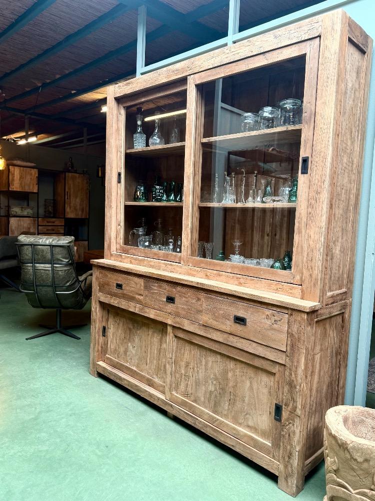 TEAK HOUTEN VITRINEKAST