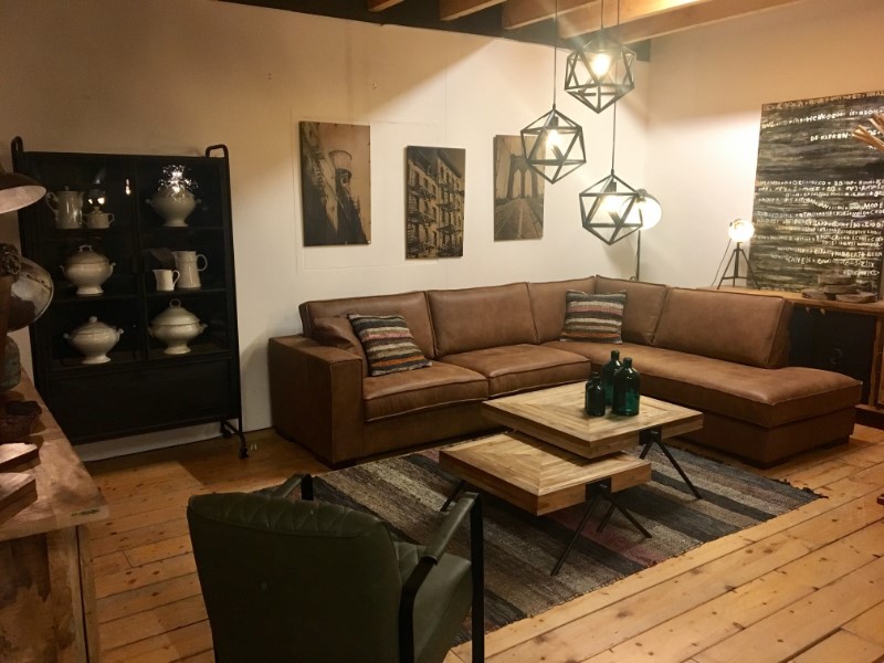 luxe lounge bank in stoer leder